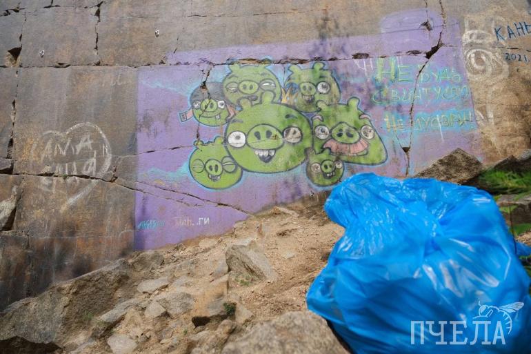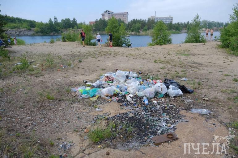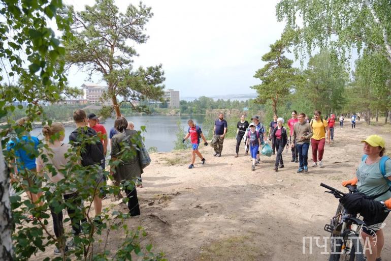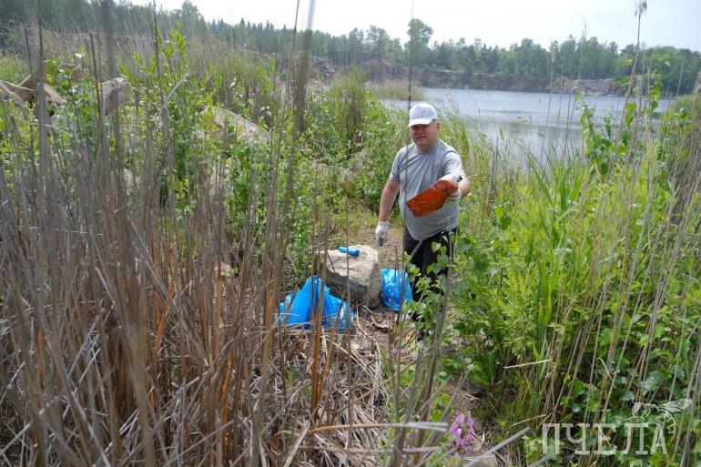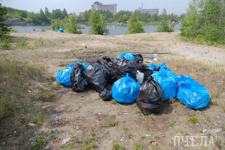 На уборку собрались порядка 30 человек. Все трудились на своих участках. Сотрудники «Пчелы» и еще несколько активистов спустились вниз, к самому берегу, и наткнулись на несанкционированную свалку. Ее разбор занял не меньше часа. Уборка шла на виду у отдыхающих на берегу Изумрудного карьера, и люди не остались равнодушными. Они стали собирать валяющийся на берегу мусор и складывать в мешки.