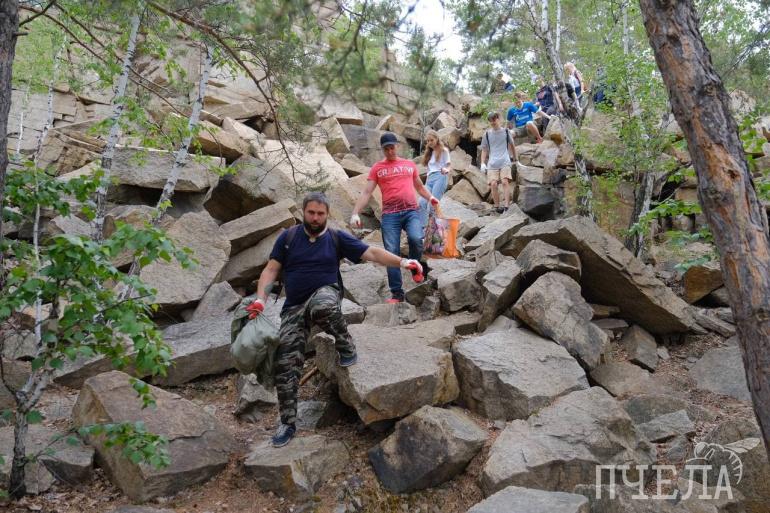 — На этот раз мусор пришлось не только собирать, но поднимать от берега наверх, по каменным кручам, — рассказал директор «Пчелы» Сергей Крапивин. — Для этого организовали живую цепочку и передавали мешки из рук в руки.