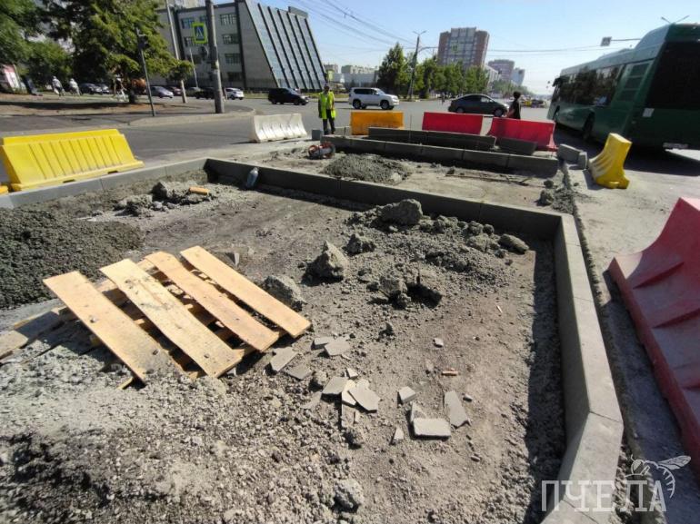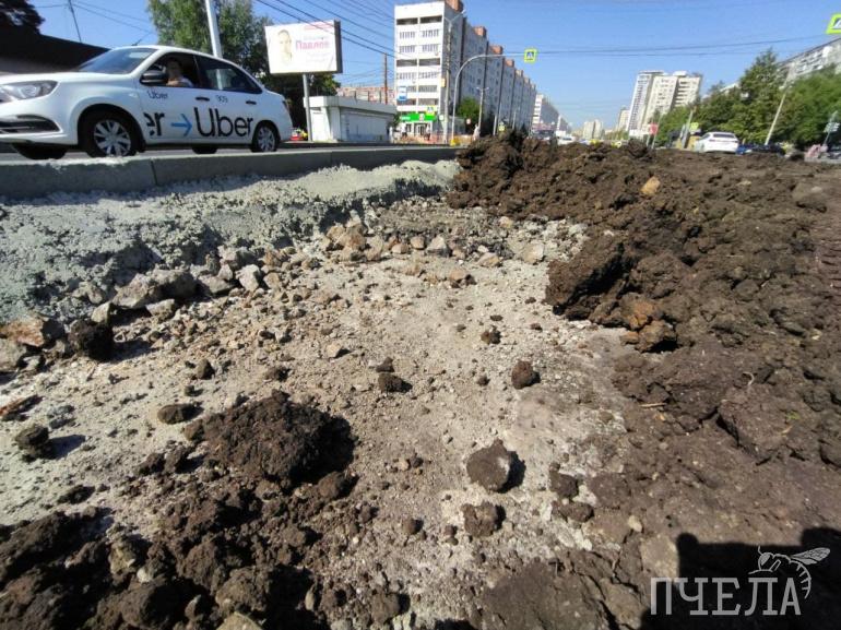 Поверх бетона уже начали засыпать почву. Но слой грунта, по мнению горожан, слишком мал — около 15 сантиметров. Такой подход смутил и челябинского депутата Дмитрия Григорчика. В своем