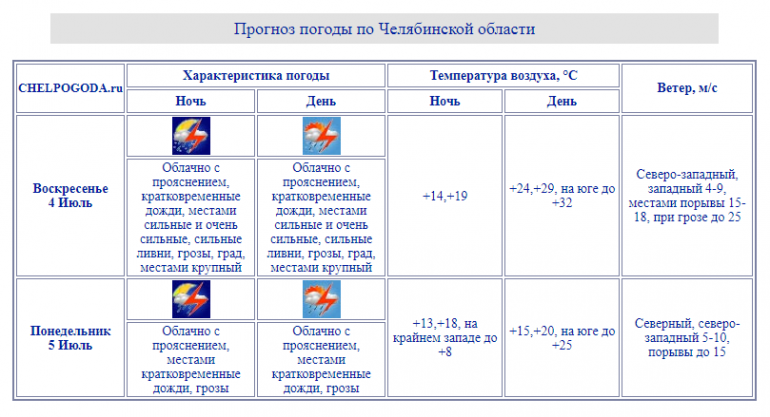 По данным синоптиков, уже сегодня днем в регионе прогнозируются кратковременные дожди, местами сильные ливни, грозы и град. В ночь на понедельник температура воздуха опустится до +13, +18 градусов, на крайнем западе до +8. Днем в понедельник в Челябинской области будет облачно с прояснениями, местами кратковременные дожди и грозы. Столбики термометров покажут до +15, +20 градусов, на юге до +25.