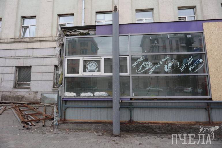 На остановке «ЧГПУ» по Свердловскому проспекту у педагогического университета сегодня, 5 июля, идёт демонтаж цветочных ларьков и киоска с шаурмой. На их месте будет комплекс для посадки пассажиров.