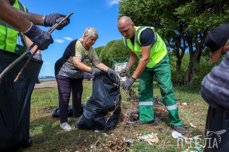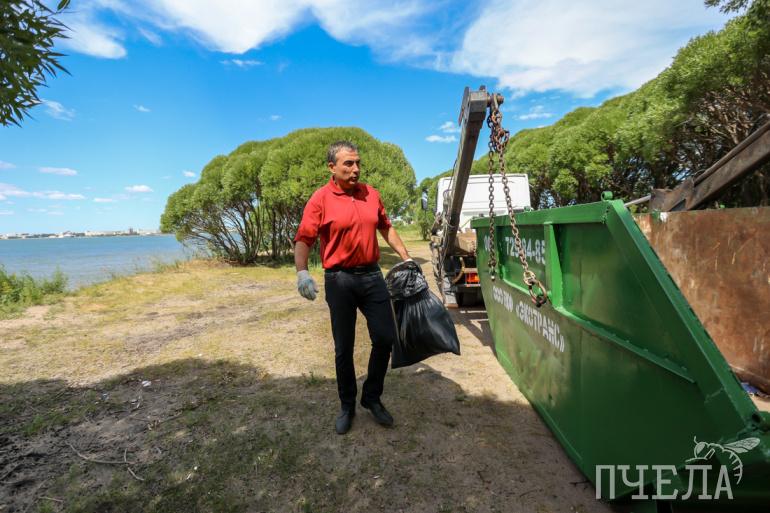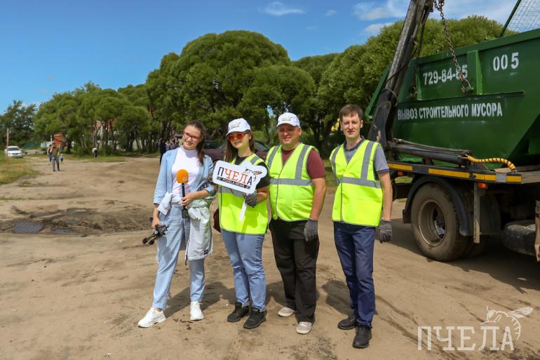 Администрация Ленинского района активно помогала «Пчеле» в организации субботника. А «Экотранс» предоставил сетчатые контейнеры, которые останутся на берегу и регулярно будут обслуживаться.