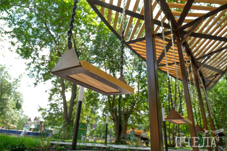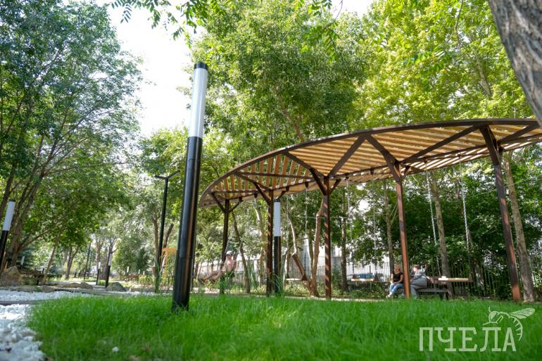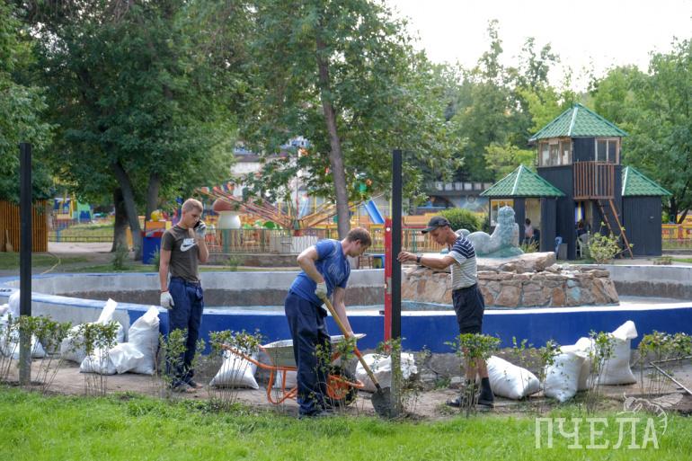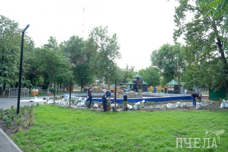Работы начались в апреле. Помимо прогулочной зоны внимание уделили аттракционам и фонтану на площадке детского городка «Лукоморье», который отреставрировали.