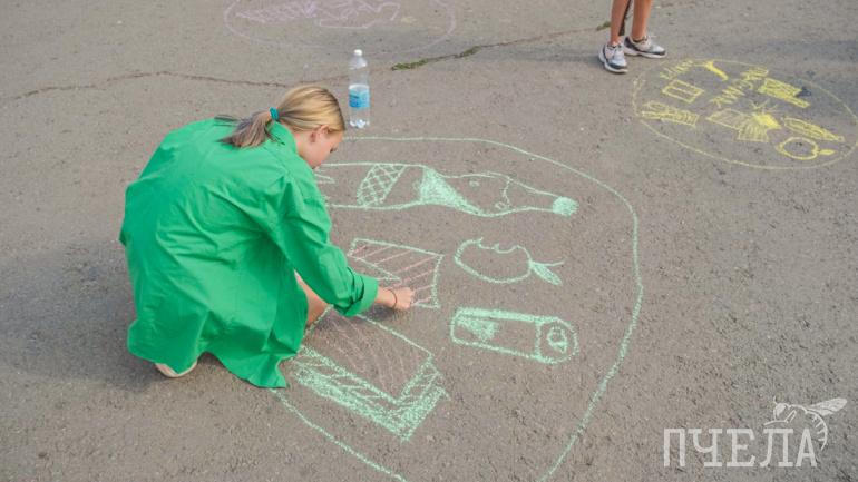Для детей провели экологическую викторину и конкурс рисунков на асфальте на тему мусоросортировки. Дети уже ориентируются в этом не хуже взрослых.