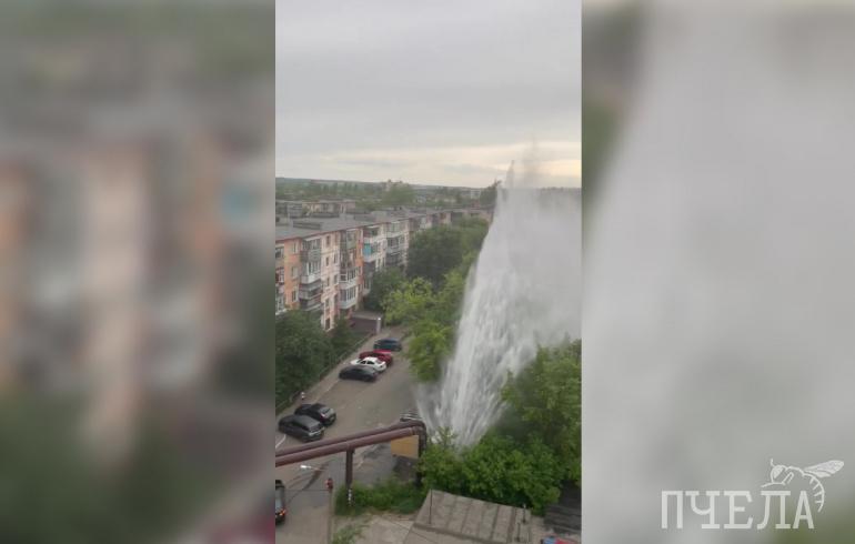 На северо-западе Челябинска забил 10-этажный коммунальный фонтан