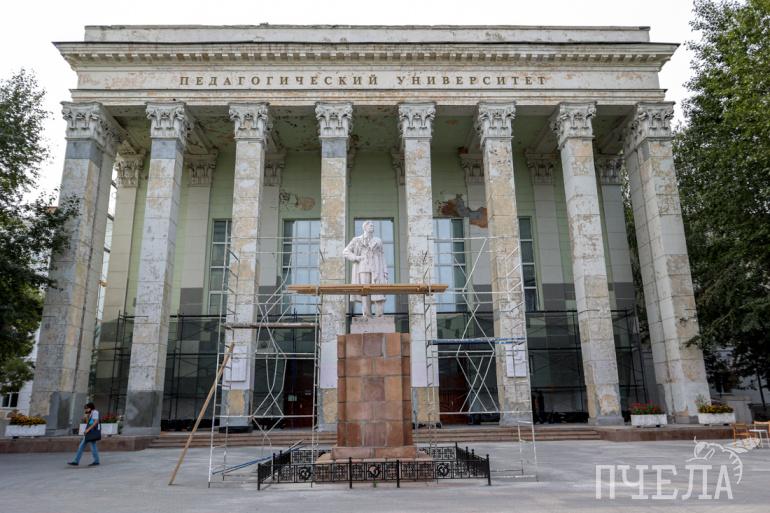 Оказалось, что памятник не состоит на балансе ни у вуза, ни у мэрии, ни у районной администрации. Вероятнее всего, за него отвечает Госкомитет охраны объектов культурного наследия. Однако и там о возможной реконструкции ничего не знают. «Пчела» отправила запрос. Специалисты госкомитета пообещали чуть позже дать ответ, находится ли монумент в их ведении и что за работы идут на объекте.