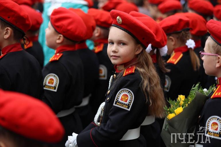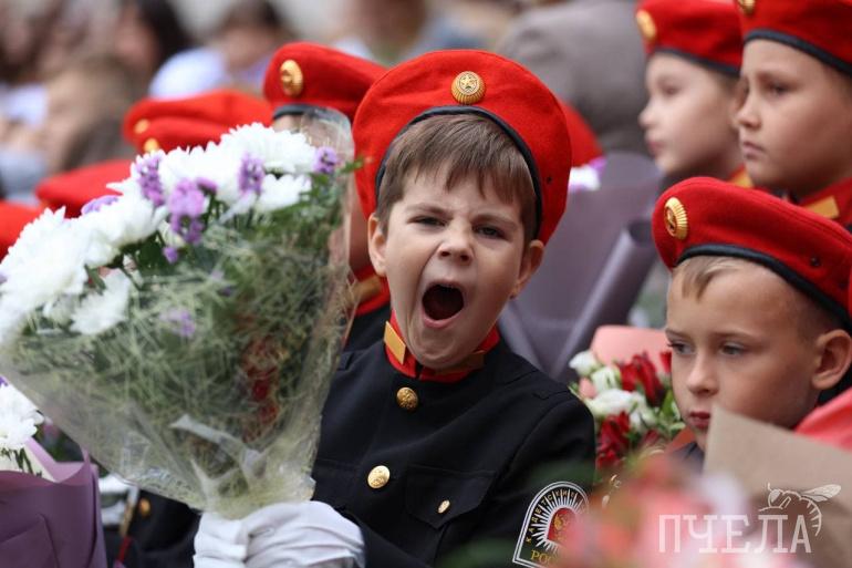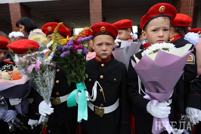 А в школе № 150 есть кадетские классы. Соответственно, в первый день учёбы многие ребята были в форме.