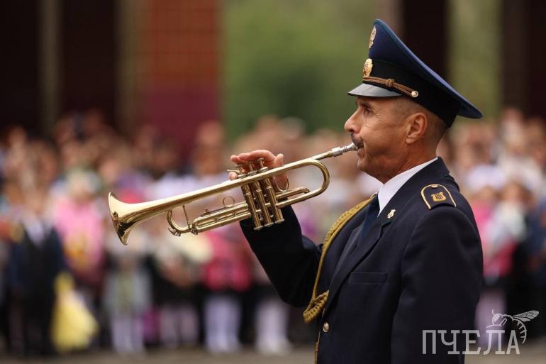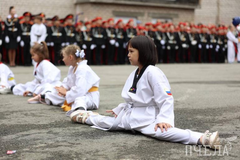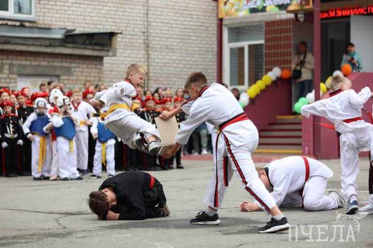 Каратисты и тхэквондисты устроили для учеников показательные выступления. Также на линейку пригласили оркестр.