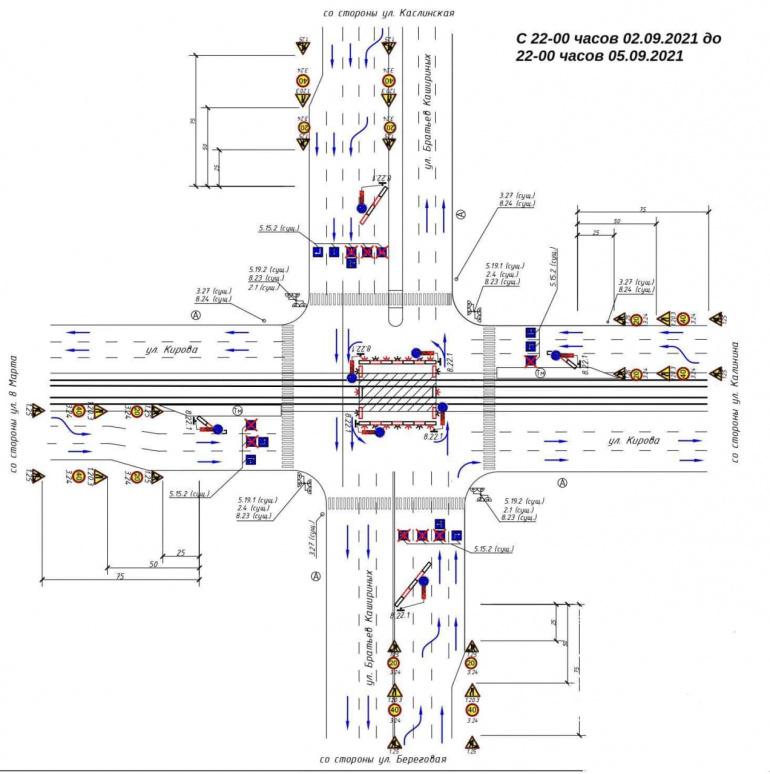 Как отметили в мэрии, схему движения изменят с 22 часов. Движение на перекрёстке во всех направлениях будет существенно ограничено до 22 часов 5 сентября. Трамваи будут работать в обычном режиме.