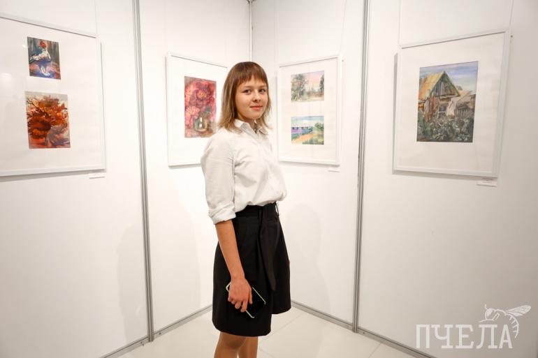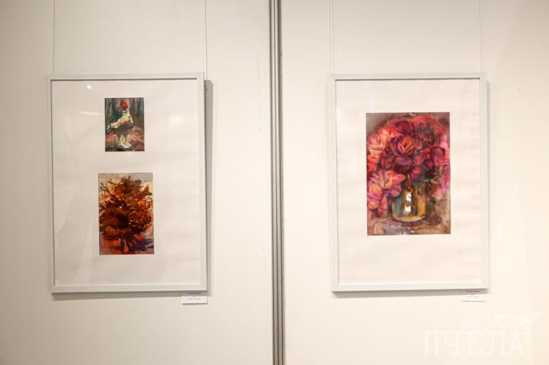 — Мне очень нравится моя работа из графики, мне нравится работа с пионами. Я использовала смешанную технику: акварель и пастель. Получилось радужно и ярко. Ещё нравится работа «Этюд». Это моя четвёртая персональная выставка, — рассказала Вика.