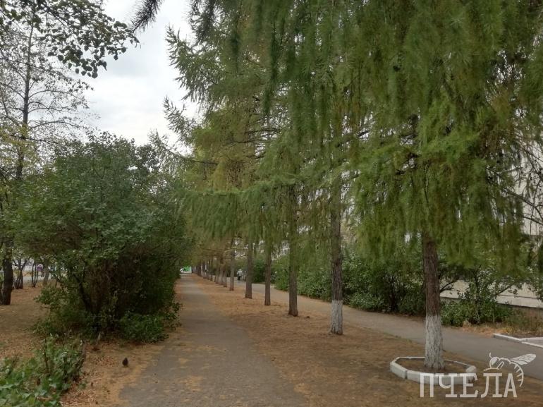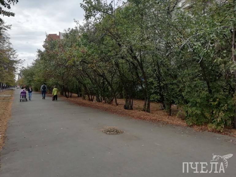 Сейчас перед домом № 66 на Комсомольском проспекте высажены пять рядов кустов и деревьев: ближе к дороге — липы, затем полоса яблонь, следом — кусты сирени, ряд лиственниц и сирень под самыми окнами дома.