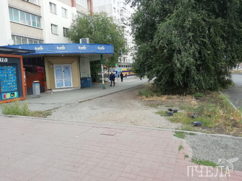 Один из двух тротуаров, ведущих со стороны Молодогвардейцев к ТК «Комсомольский» упирается в ступени, которыми мало кто пользуется. Проехать на самокате, велосипеде или провести коляску здесь проблематично. А зимой в этом месте вырастают огромные кучи снега.