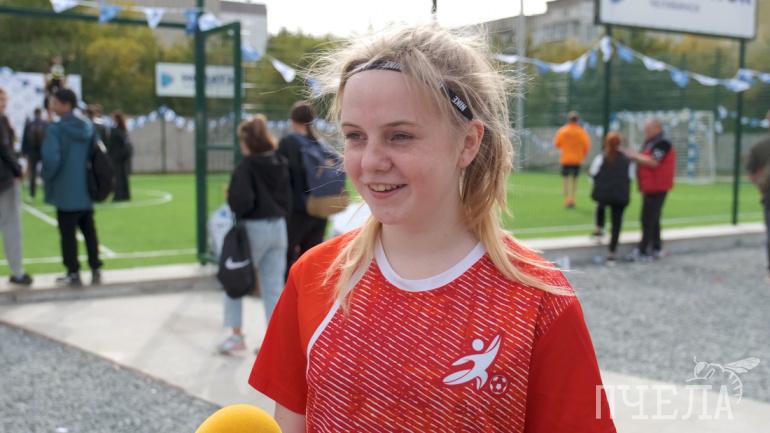 — В том году мы хорошо тренировались и получили это поле. Мы так рады этому, потому что раньше здесь была просто асфальтированная площадка, это травмоопасно. А теперь — искусственный газон, всё как надо. Играть удобнее: и мяч лучше чувствует поле, и мы лучше чувтсвуем мяч, — рассказала футболистка команды школы № 28 Челябинска Дарья Ахмерова.