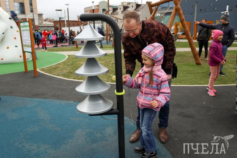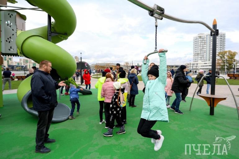 Новая детская площадка в «Сквере искусств» уже успела привлечь внимание горожан. Тут есть скалодром, корабль исследователя, гамак, качели, батуты, инсталляция из стекла и букв. Также на объекте высадили более 150 деревьев и более полутора тысяч кустарников.