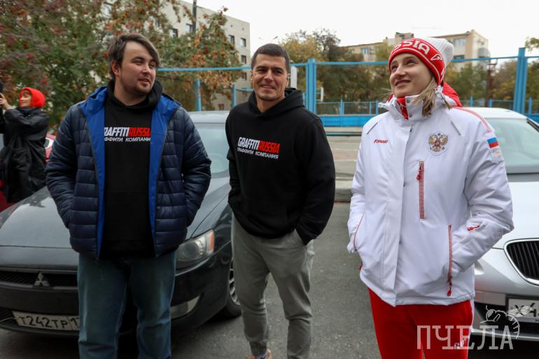 — Впечатляет. Очень понравилась работа ребят. Но добавила бы ещё медалей (смеётся). Сама попробовала баллончик подержать, понравилось, ёще бы что-то нарисовать, — поделилась впечатлениями героиня граффити Валерия Шабалина.