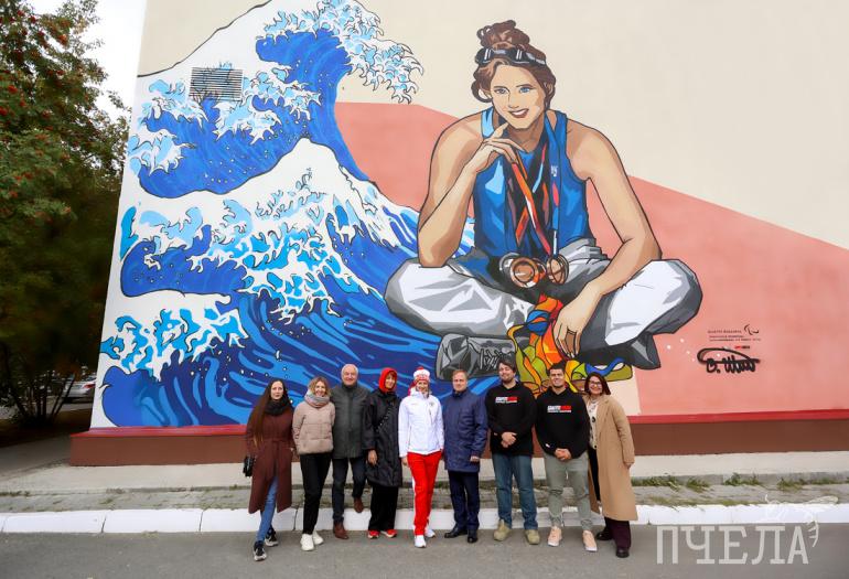 Фасад УралГУФКа украсили граффити с изображением паралимпийской чемпионки Валерии Шабалиной. Девушка была триумфатором игр в Токио. На Паралимпиаде этого года пловчиха завоевала три золота и одно серебро.