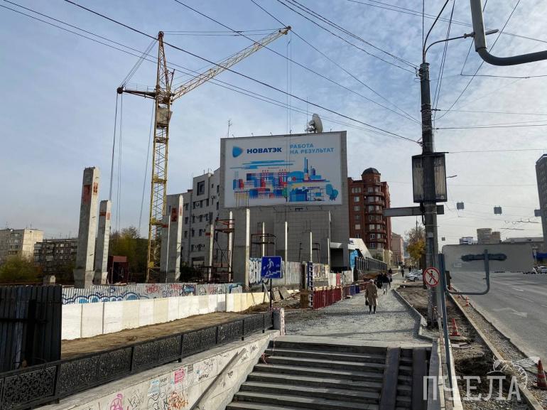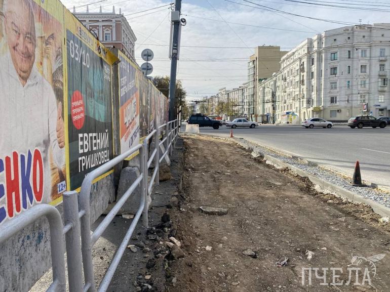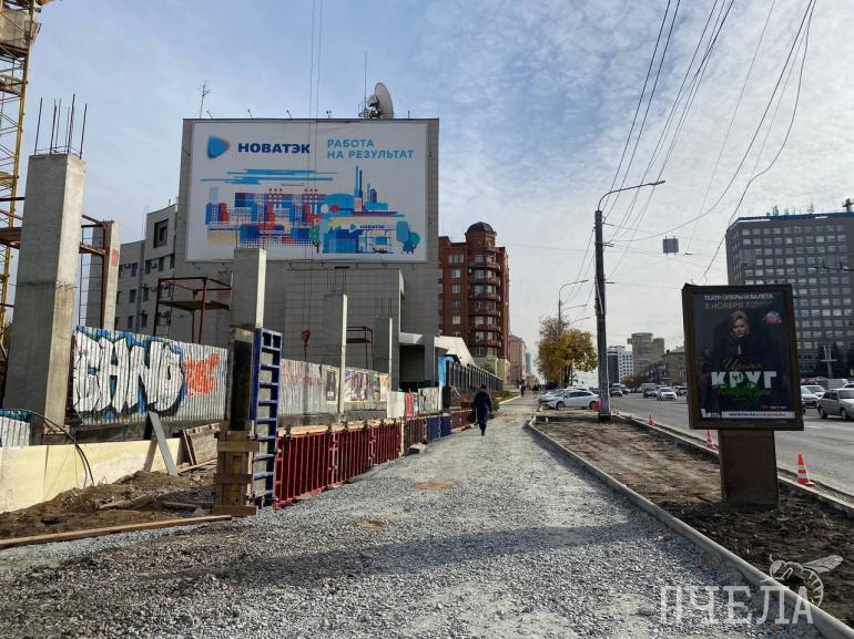 Рядом с тротуаром работает техника, на участке, из-за которого было столько споров, не первый год возводят торгово-развлекательный комплекс. Застройщики взяли на себя и благоустройство пешеходной зоны.
