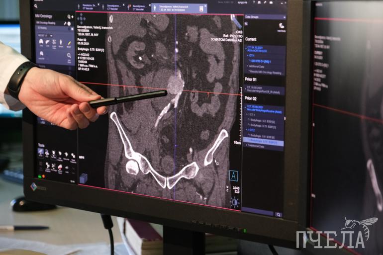 Пациенту грозила полостная операция с тяжёлой лапаротомией (разрезание тела в области живота). Но у мужчины в анамнезе уже было несколько вмешательств на животе, что грозило дополнительным осложнением при открытой операции. Поэтому специалисты решили пойти по нетрадиционному пути — вообще обойтись без разрезов.