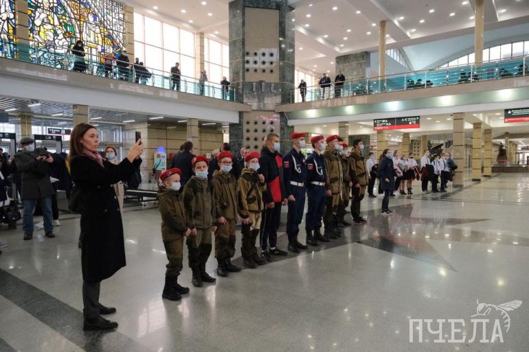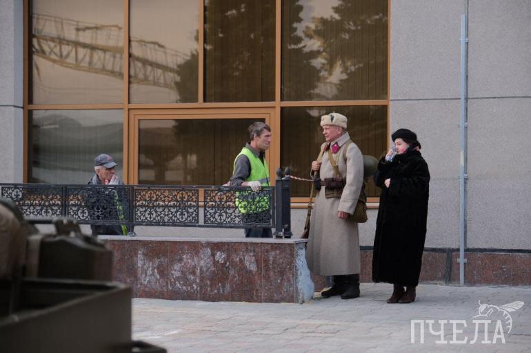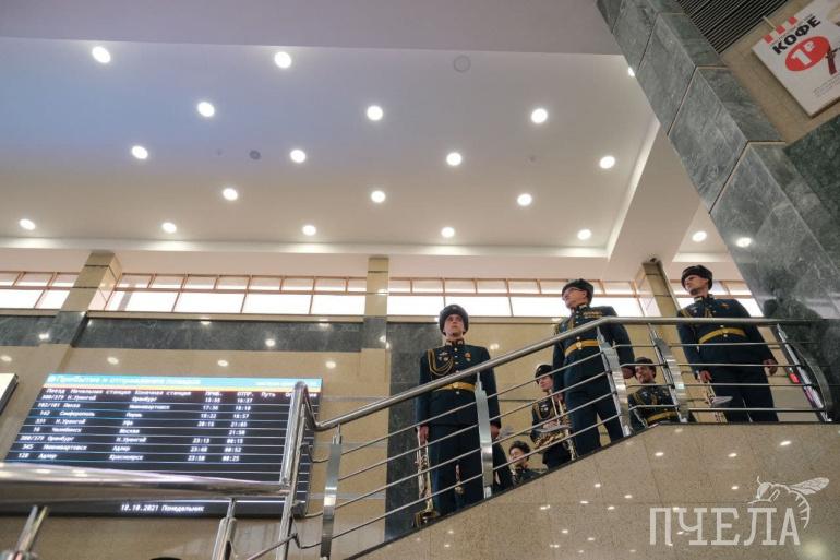 На железнодорожном вокзале Челябинска установили мемориальные плиты «Челябинск-Танкоград — город трудовой доблести». В честь открытия стелы на вокзале организовали историческую реконструкцию событий военных лет — проводы челябинских танкистов на Великую Отечественную войну. На мероприятии побывал фотограф «Пчелы».