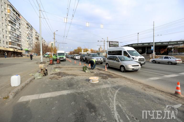 На проспекте Победы подрядчик приступил к устанавке индукционных петель на 11 трамвайных путях. Они смогут подстраивать светофоры под движение трамваев и давать им зелёный свет. Это должно сократить время движения общественного транспорта между остановками. Такая система в Челябинске внедряется впервые.