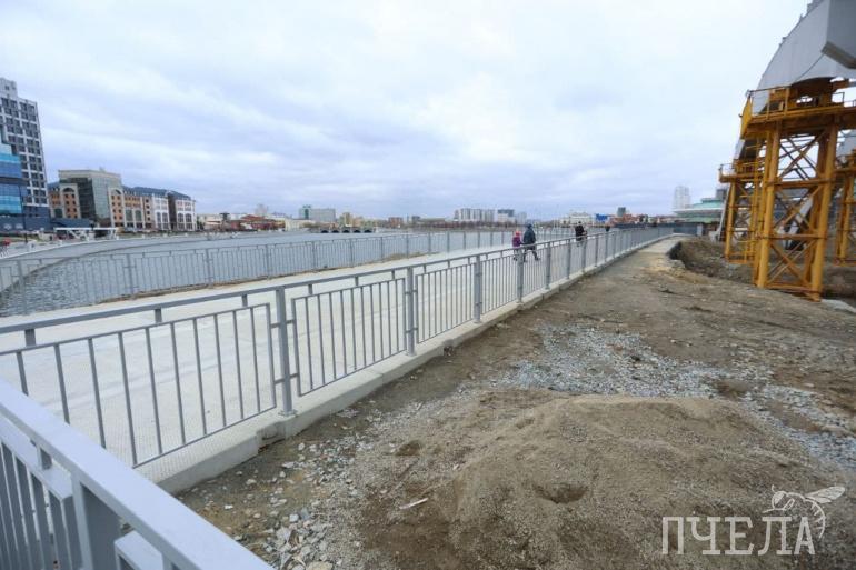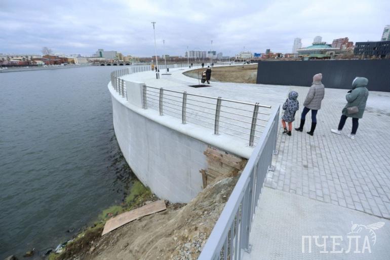 У недостроя конгресс-холла в центре города открыли прогулочную зону длиной в 300 метров. Пока о полном её благоустройстве говорить рано, но полюбоваться видом на реку и отдохнуть на лавочках можно.