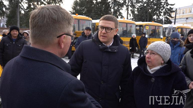 Машины передал главам районов губернатор Алексей Текслер. С представителями сельских территорий он пообщался лично на площади Революции, куда привезли 33 жёлтых ПАЗа и шесть «Газелей».