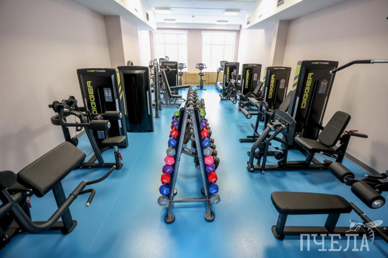 Там есть два спортивных, тренажёрный и хореографический залы, стадион, уличная