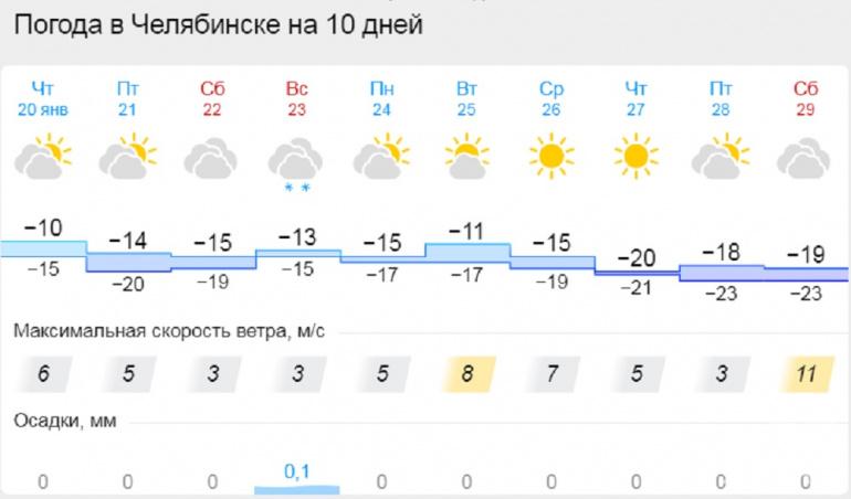 Днём в четверг, 20 января, в Челябинской области будет сравнительно тепло — до -5 градусов. Но уже в ночь на пятницу в регионе похолодает до -25, а следующей ночью — до -28 градусов. А ветер будет слабым и неустойчивым, что принесёт промышленным городам проблемы с выбросами. Об этом сообщается на сайте местного отдела Гидрометцентра.