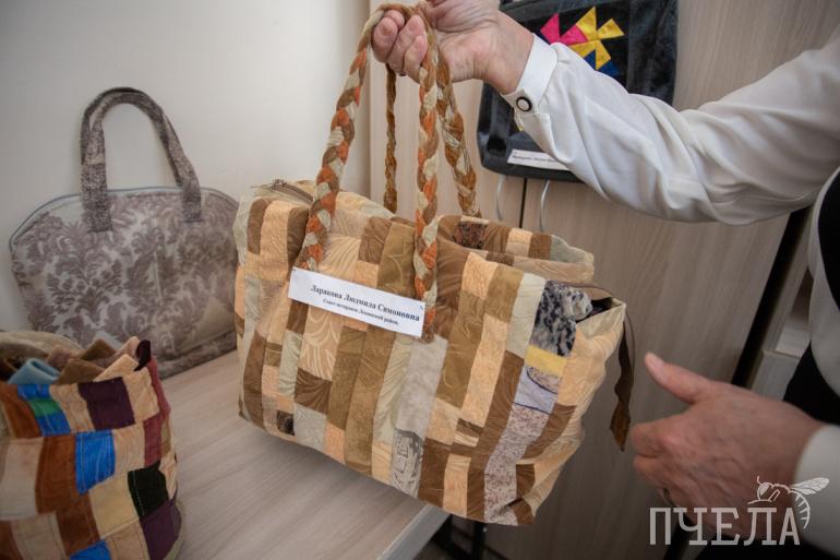 — Я занимаюсь пошивом сумок лет 15. Мне не нравились пакеты, с которыми все женщины ходили. Эти пакеты однообразные, рвутся. Такая женщина может быть интересная, а в руках — пакет. И я решила попробовать сшить сумку, взять любую ткань и сделать. Первую сумку сшила из лоскутков, которые купила на мебельной фабрике. Получилась дорожная сумка — лёгкая, удобная. Потом сшила себе народный костюм, а к нему — сумочку-корзиночку, — рассказала Людмила Ларакова.