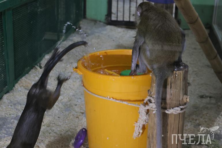 — Больше всего им нравятся игрушки, которые можно взять в руку. Видимо, удобно. Ещё они очень любят цветные пледы: надевают их на голову, таскают, закручивают, заворачивают друг друга, — рассказала заведующая отделом «Экзотичные животные» Наталья Шишкова.