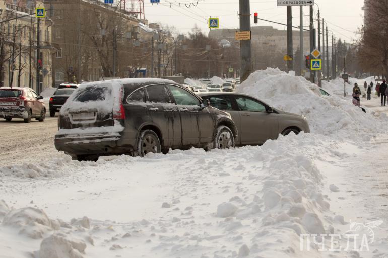 Последствия снегопада в Челябинске разгребают уже сутки: фоторепортаж