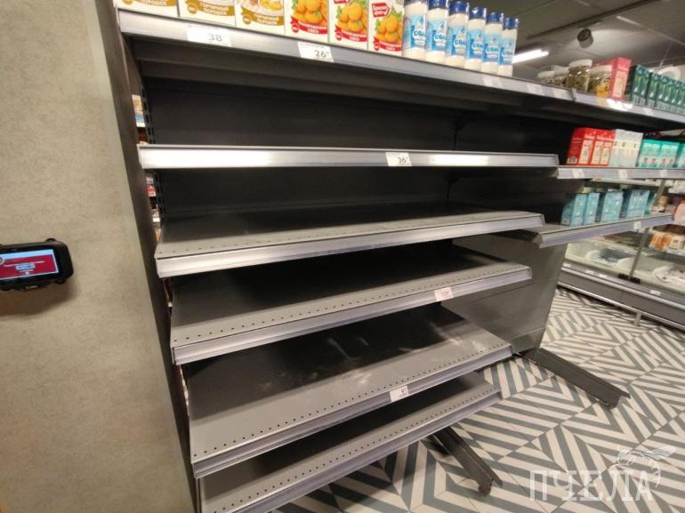 Повышенный спрос на товары первой необходимости возник после начала спецоперации на Украине. Многие на всякий случай решили сделать запас продовольствия. Нашлись и те, скупал продукты для дальнейшей перепродажи. В итоги прилавки мигом опустели.
