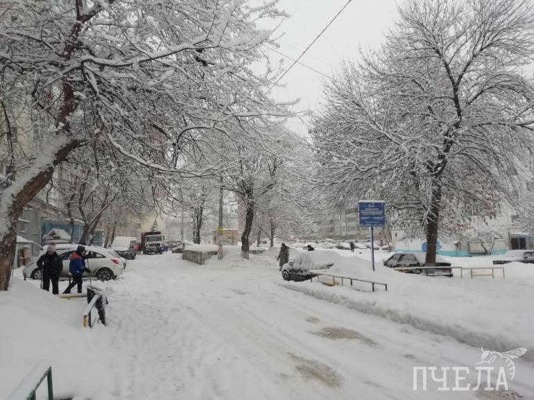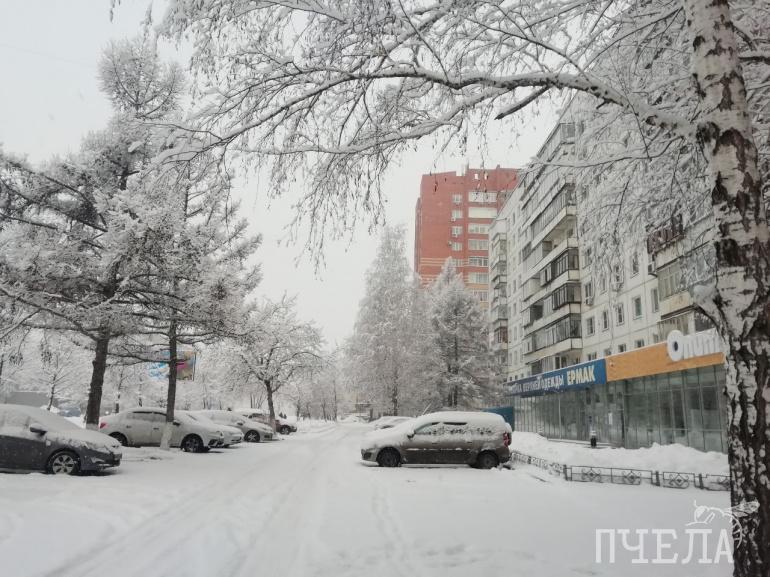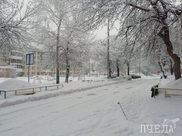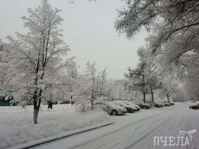 В Челябинске утро началось с пушистого снегопада