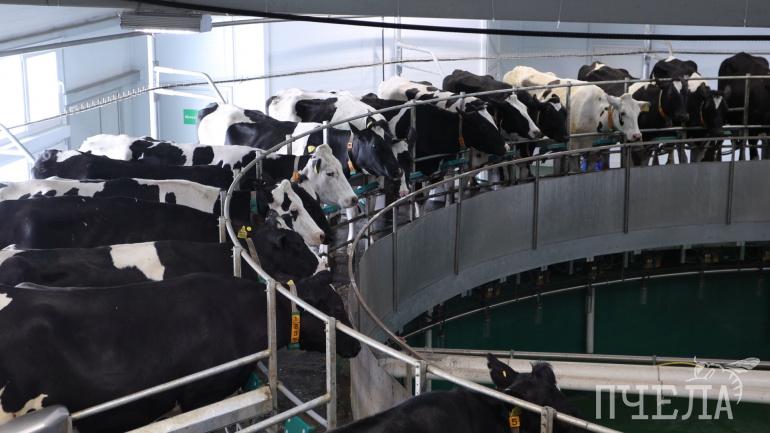 За один круг аппараты выполняют процесс доения, в среднем удаётся получить по 25 литров молока с каждой коровы. Карусель крутится до полудня, за шесть часов через неё проходит полторы тысячи бурёнок.