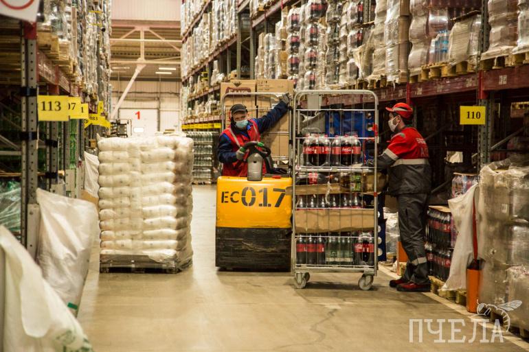 Прессе и главе региона провели мини-экскурсию по распределительному центру. Как говорят продавцы, дефицита продуктов, в особенности, сахара, сейчас нет.