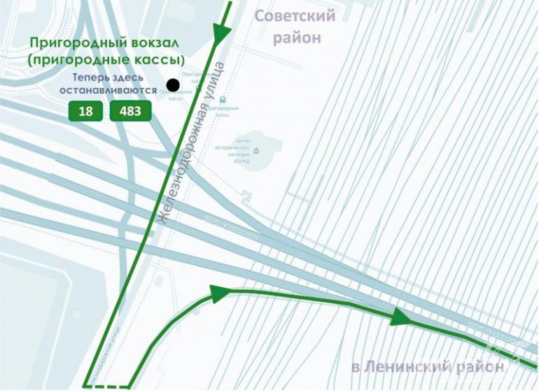 Для автобусов № 18 и № 483 сделали остановку напротив пригородного ж/д вокзала, чтобы пассажиры успевали на электричку.
