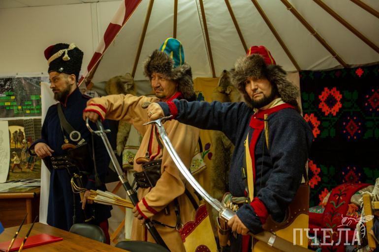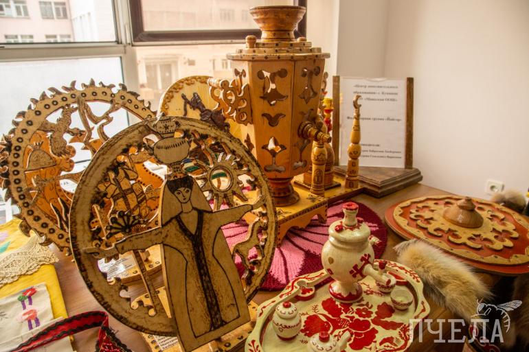 Пока официальные мероприятия шли своим чередом, организаторы устроили для гостей музейную зону с выставкой национальных костюмов, изделиями народных промыслов, стилизованными женскими украшениями, предметами старины, а также литературный уголок. Все желающие смогли примерить башкирские костюмы и сделать профессиональные фото в полуюрте.