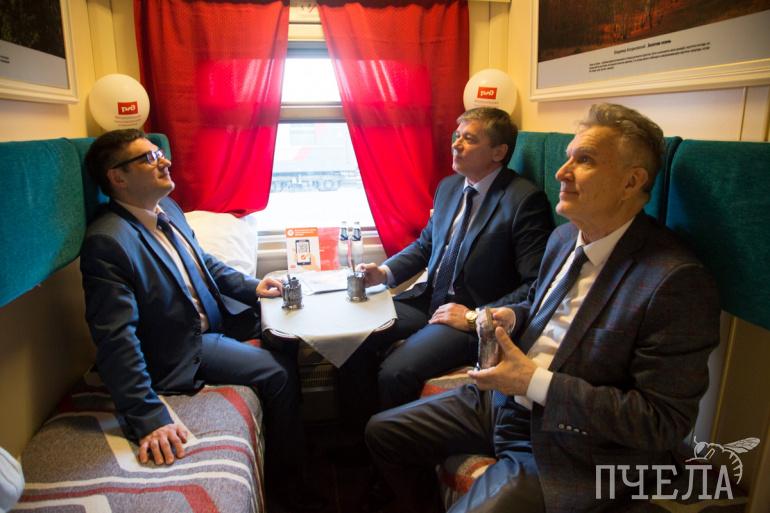 — «Федеральная пассажирская компания» стремится развивать внутренний российский туризм, пропаганду культуры в регионах. И этот вагон мы оформили так для того, чтобы повысить комфорт пассажиров. Наша компания реализовала четыре таких проекта. И мы не будем на этом останавливаться, — пообещал начальник Уральского филиала акционерного общества «ФПК» Евгений Елистратов.