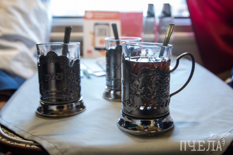 Антуража в вагоне добавляют брендированные подстаканники