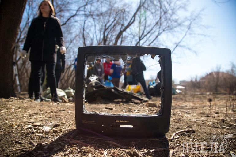 Откуда столько мусора взялось на «Плодушке» — уникальной красоты месте в Ленинском района Челябинска — неизвестно. Однако некоторые находки там действительно удивляли. Например, выброшенный кем-то маленький телевизор и композиция из искусственных цветов в резиновом сапоге.