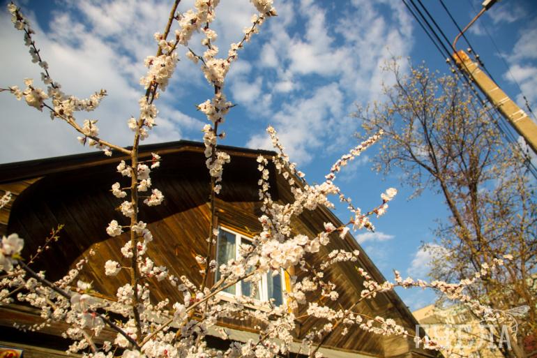 Цветущие деревья есть и в центре города, и на садовых участках в частном секторе. На улице Цвиллинга распустились бутоны кизильника, белые цветы радуют горожан. В парках и скверах уже зацвели яблони. Густым цветом покрылись и ветви вишнёвых деревьев.