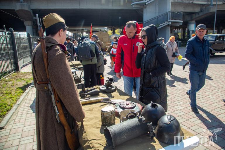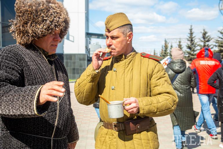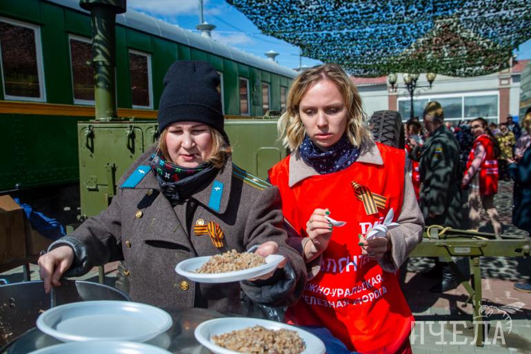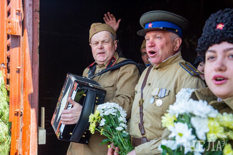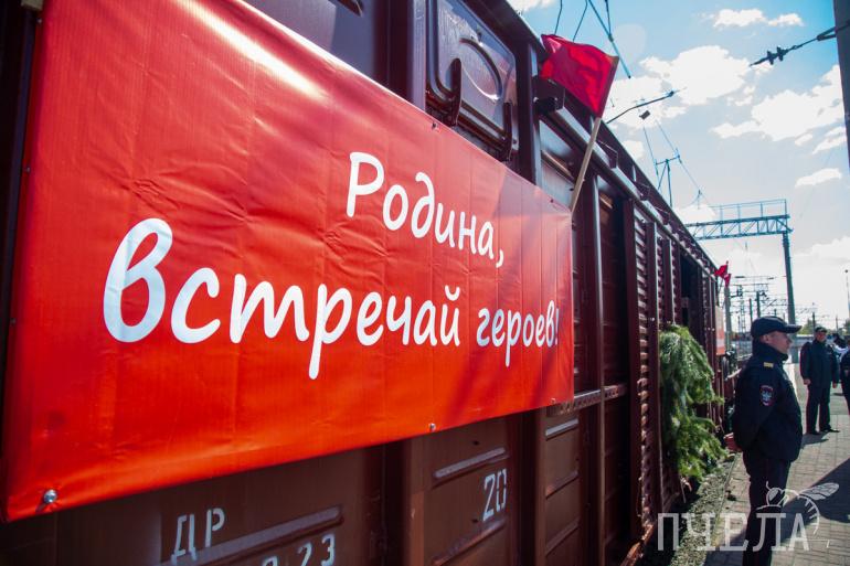 «Поезд Победы» прибыл на вокзал Челябинска, успев побывать в Магнитогорске, Златоусте и на других станциях. Встречать состав на перроне челябинцы пришли с цветами и камерами. Вагоны состава вел паровоз серии Л. Из теплушек горожанам махали актеры в форме времен Великой Отечественной войны.