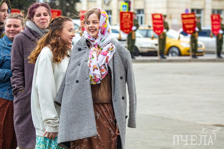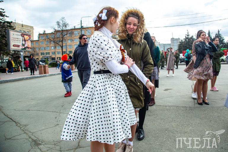 Погода на улице не располагала к танцам в ситцевых платьицах и гимнастерках, однако участники «Вальса Победы» стойко выдержали холод и подарили городу живое и яркое зрелище. Идея кружиться в вальсе под музыку военных лет появилась семь лет назад как способ сказать ветеранам «спасибо» за Победу.