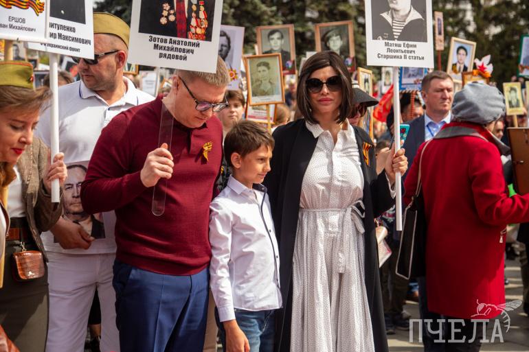 Во главе колонны прошли первые лица области: губернатор Алексей Текслер, глава Челябинска Наталья Котова, а также региональные министры и депутаты ЗСО. Все они в финале приняли участие в возложении венков к мемориалу.