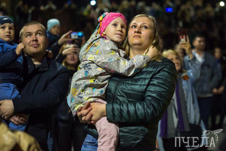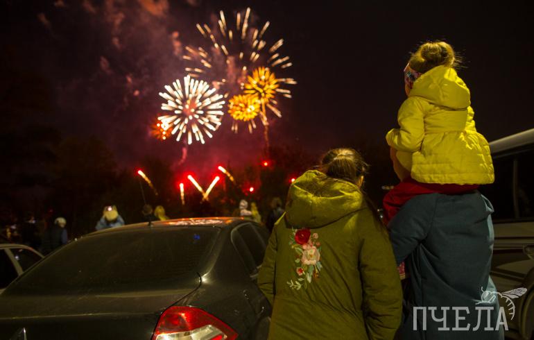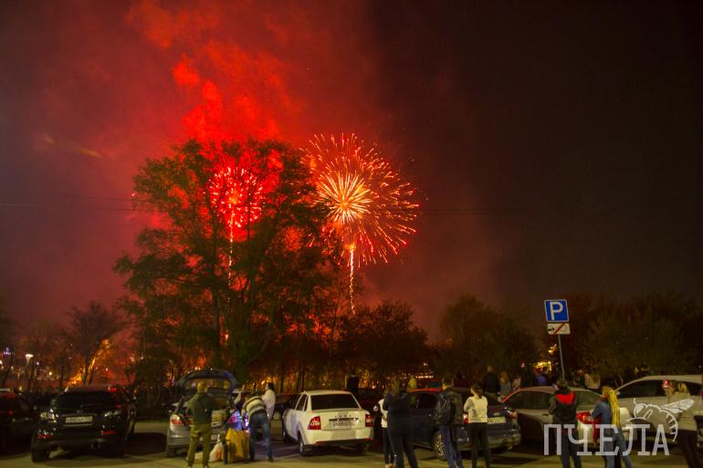 Салют начался в 22 часа. Посмотреть на залпы, которые гремели в течение десяти минут, собрались около 60 тысяч человек. Погода, к слову, позволяла с комфортом насладиться ярким представлением.