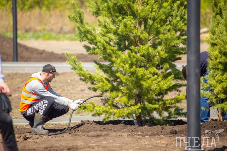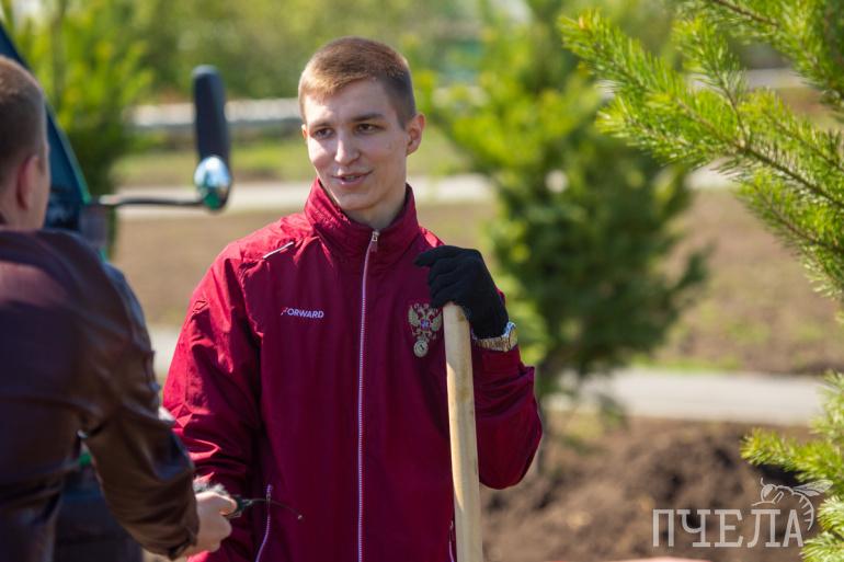 В Челябинском парке молодые спортсмены посадили аллею из 15 сосен-крупномеров