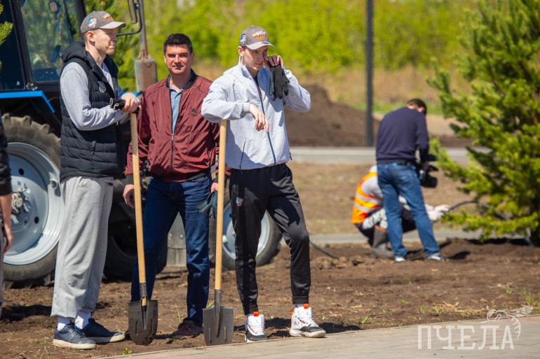 Трёхметровые сосны, яблони и ивы, которые сегодня посадили на аллее в Парке Дружбы, появились по желанию спортивных клубов города. Озеленением в новом общественном пространстве спортсмены занимаются уже второй год.