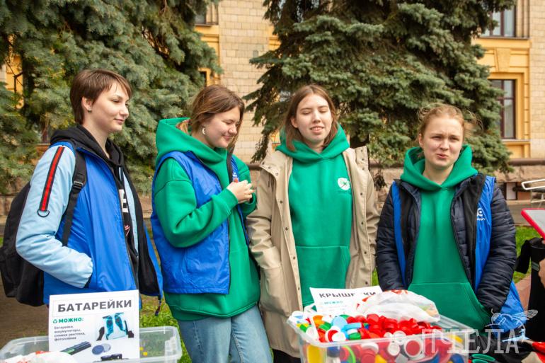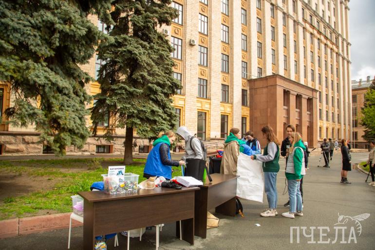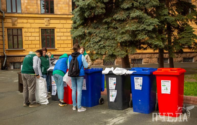 В Челябинске в пятницу, 13 мая, прошла студенческая акция по сбору вторсырья. Контейнеры для сбора различных фракций пластика, стекла и других отходов установили на площадке перед главным корпусом Южно-Уральского госуниверситета. Принести мусор на переработку могли студенты вуза и другие горожане. Редакция «Пчелы» тоже поучаствовала в полезной акции.