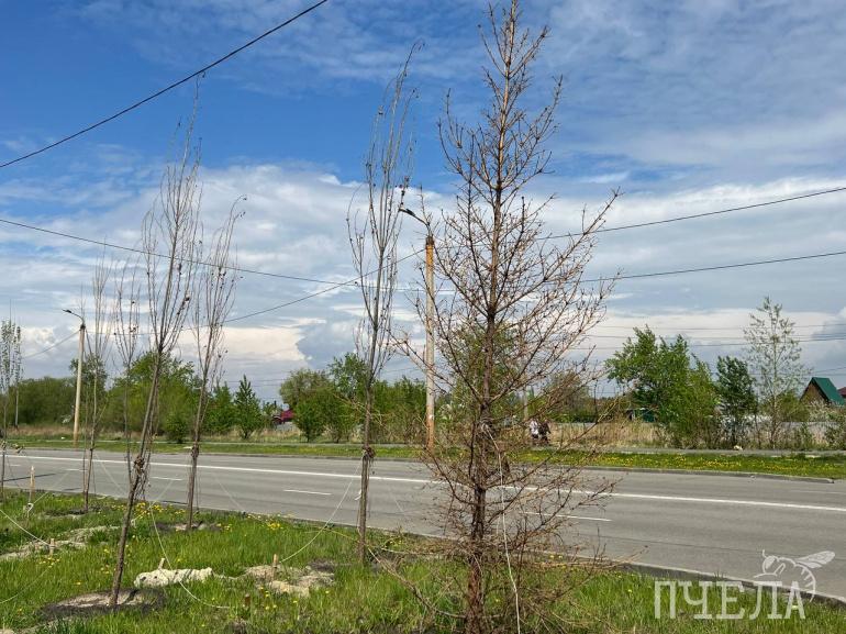 В челябинском микрорайоне Чурилово после зимы засохло больше половины крупномеров, высаженных вдоль улицы Сергея Герасимова. На некачественное озеленение в соцсетях пожаловались местные жители. Среди 102 новых деревьев они нашли 57 погибших.