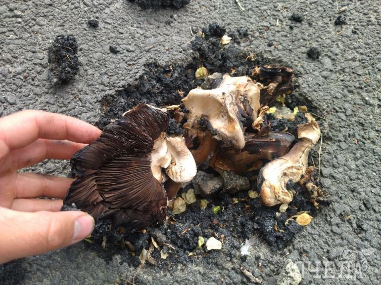 Из-под асфальта предположительно выбрались шампиньоны